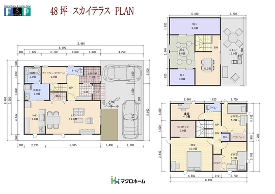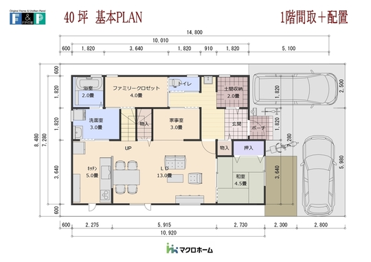 ゆとりの40坪の間取り。間口は35坪PLANと同じ7.6Mで実現可能。それぞれのお部屋を充実させたPLANになっています。