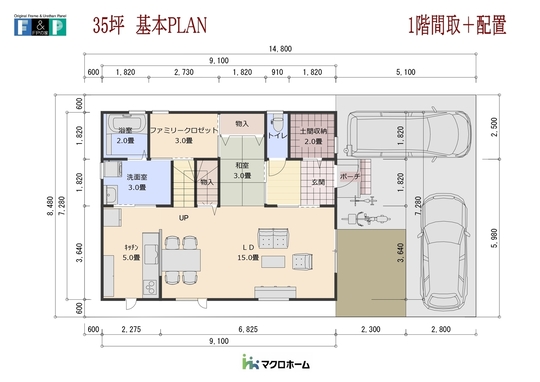 こちらも土地間口6.66MのPLANです。18畳のLDKの横に3畳の和室を設け少し広めの洗面脱衣室の隣にファミリークローゼット1.5畳を設けました。ただ階段の位置が変わったため2階の廊下は少し長めになってしまいました。1階優先の間取りです。