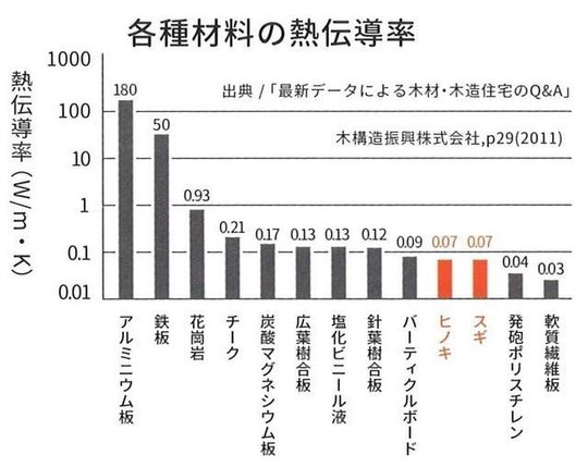 コンクリートは木に比べて12倍も熱を伝えやすく基礎に使う断熱材(熱伝導率0.04の場合)40倍も熱を伝えてしまいます。