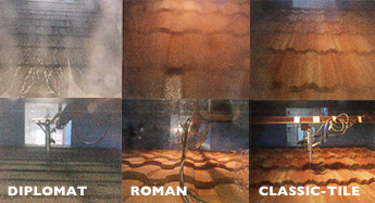 また、表面石粒の凸凹は雨粒を拡散させる効果があり、通常の平滑な表面に比べ雨粒が小さくあたります。それにより、鋼板屋根の「うるさい音」の原因である雨粒があたった時の鋼板の微振動による高周波の音も表面自然石粒層によって抑える事が可能になります。