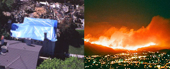 1994年と2003年に発生したカルフォルニアの大火災でディーズ ルーフィングは、その性能を信じたホームオーナーたちの財産を守りました。