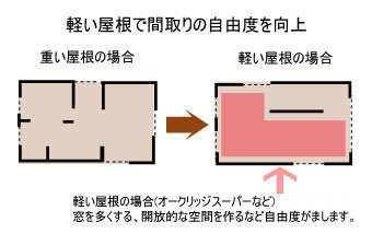 つまり、屋根材が軽ければ、耐震設計に必要な壁の量などが少なくて済み、 その分間取りの自由度が増すことになります。