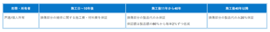 (保証書に記載されている施主様が建物を所有している場合に限ります。所有権が変更された場合は、施工日からの期間を問わず保証の対象外となります。)